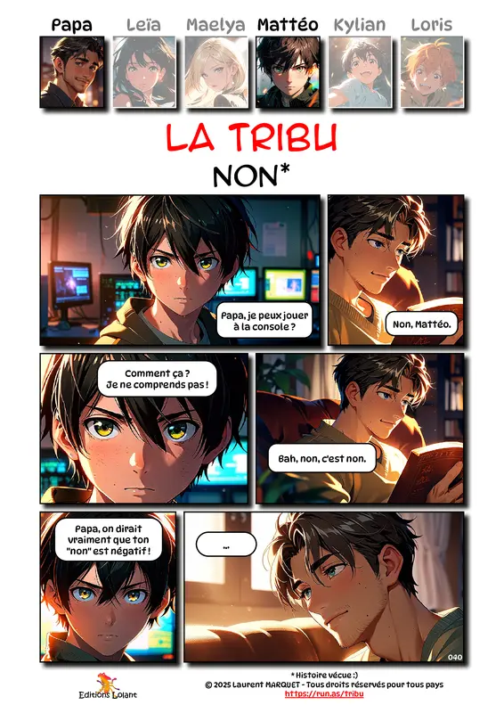 La Tribu raconte les histoires d'une famille sous forme de bande dessinée d'une seule planche. Elles sont faites à partir des "Répliques" de Papa Câlin.