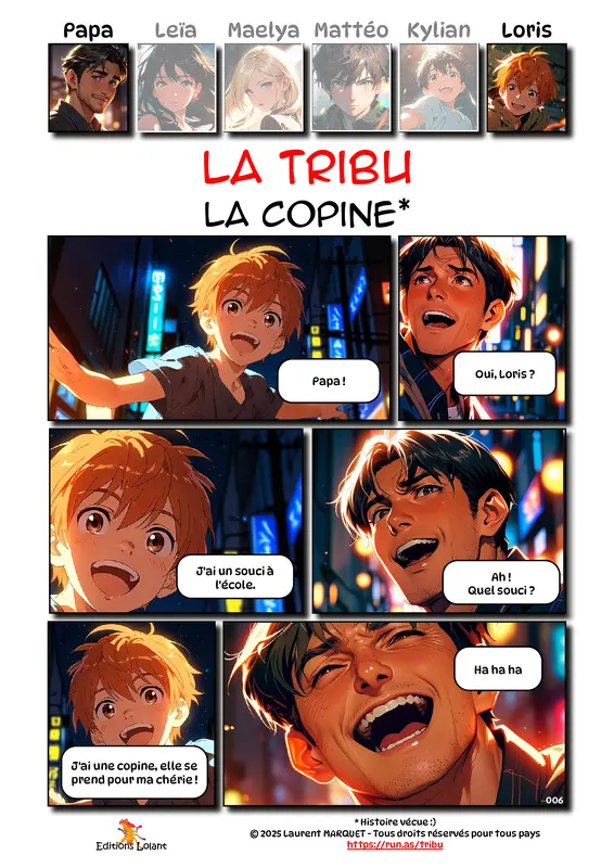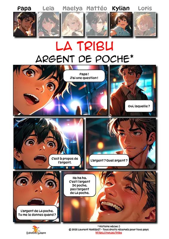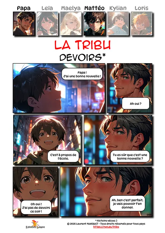 La Tribu raconte les histoires d'une famille sous forme de bande dessinée d'une seule planche. Elles sont faites à partir des "Répliques" de Papa Câlin.