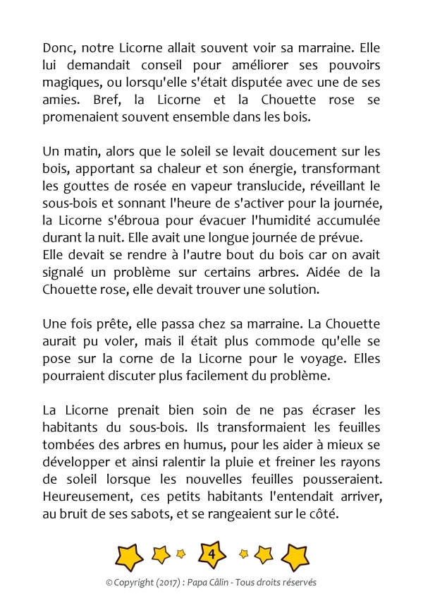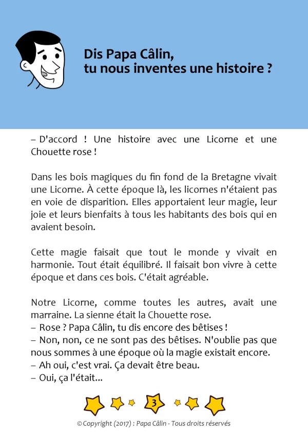 Une histoire de Papa Câlin avec la Licorne et la Chouette rose, où l'on découvre que des problèmes peuvent trouver leur solution par l'entraide et la réflexion.