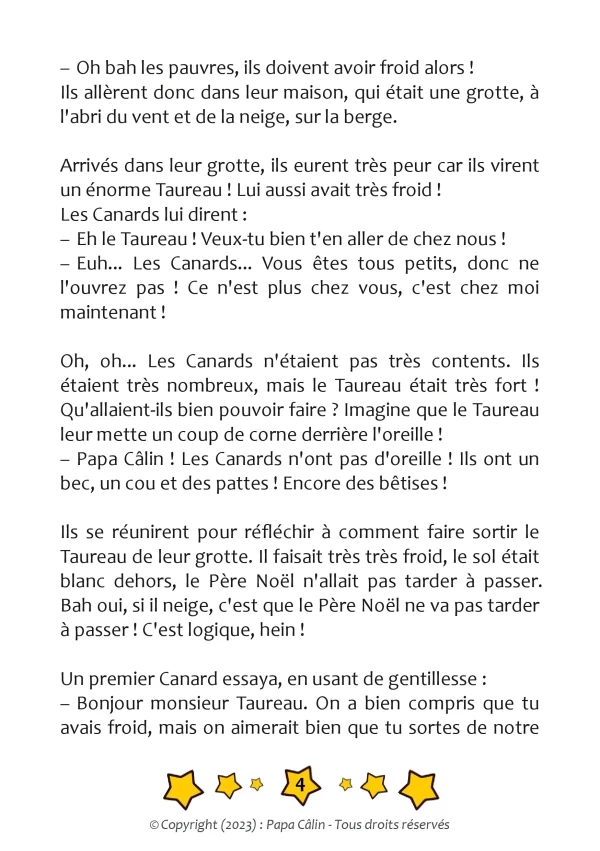Une histoire de Papa Câlin avec la Neige, le Taureau et les Canards où l'on découvre que l'unité peut faire battre en retraite les plus forts.