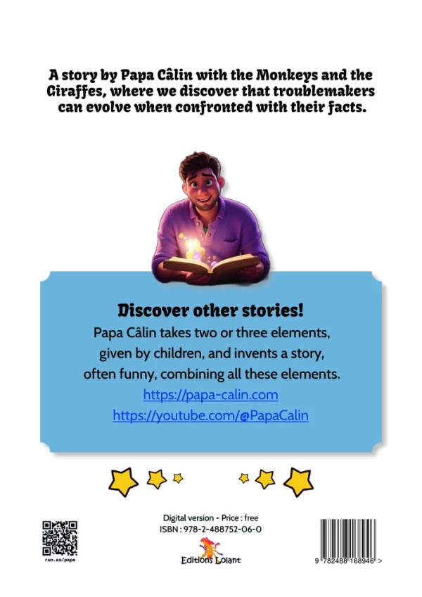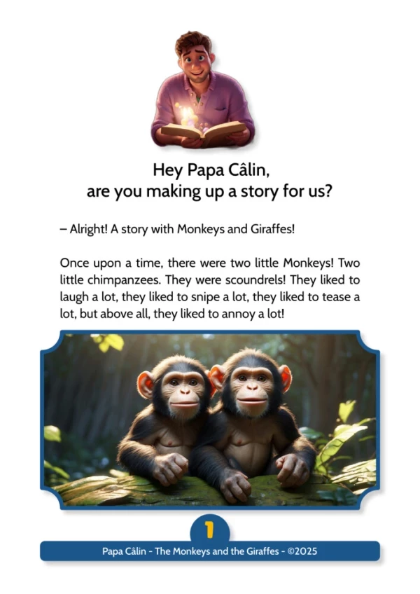 A story by Papa Câlin with the Monkeys and the Giraffes, where we discover that troublemakers can evolve when confronted with their facts.
