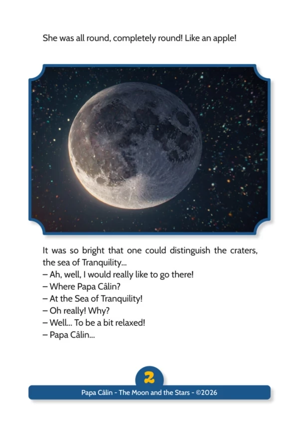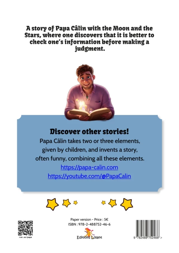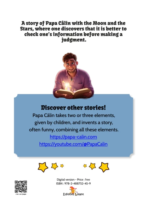 A story of Papa Câlin with the Moon and the Stars, where one discovers that it is better to check one’s information before making a judgment.