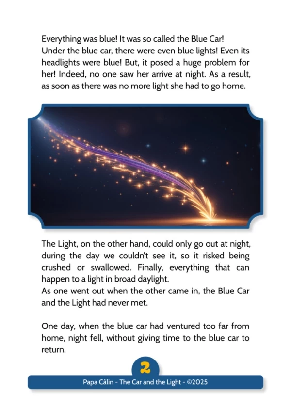 A story by Papa Câlin with the Car and the Light, where we discover that cooperation can lead to new experiences with beautiful results.