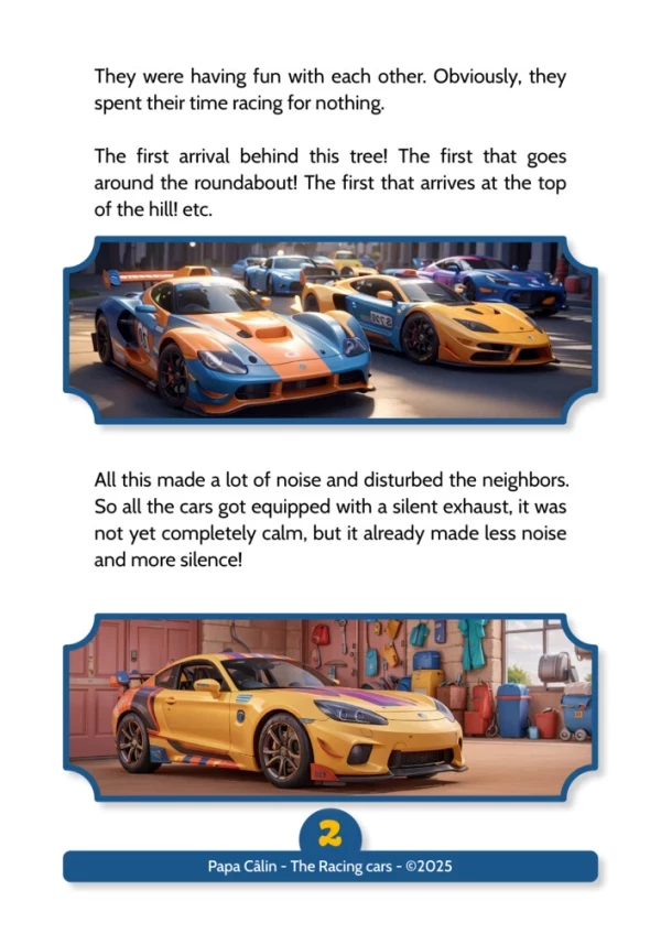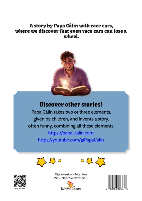 A story by Papa Câlin with racing cars, where we discover that even race cars can lose a wheel.