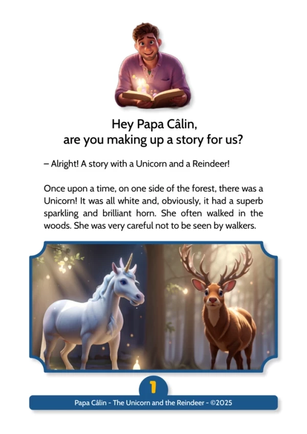 A story by papa Câlin with a Unicorn and a Reindeer, where we discover that helping each other can help solve serious problems.